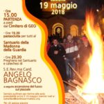 19 Maggio 2018 PARTENZA A PIEDI ALLE ore 15.00 dal Cimitero di GEO ore 19.30 pastasciutta Al Santuario della Madonna della Guardia ore 20.30 Preghiera nel Santuario e catechesi di S.E. Rev.ma.Card.Angelo Bagnasco a seguire accensione del fuoco sul piazzale Servizio pulman su richiesta, per rientro alle auto inviando una mail entro il 14 maggio a […]