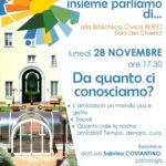 Il gruppo “Università” del cammino di Gioia Piena propone una serie di incontri dal titolo “Insieme parliamo di…”.Il primo incontro si terrà lunedi 28 novembre alle ore 17.30 presso la Biblioteca Berio (Sala dei Chierici) al quale interverrà la dott.ssa Sabrina Costantino, psicologa, che affronterà il tema dell’amicizia. Dopo la relazione dell’ospite seguirà un ampio […]