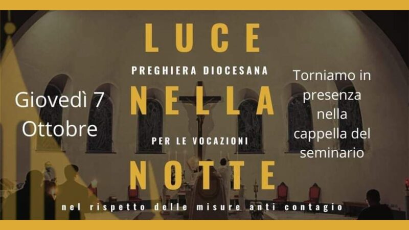 Giovedì 7 ottobre la veglia di preghiera per le vocazioni ‘Luce nella notte’ alle ore 21 presso il Seminario Arcivescovile, torna in presenza, nel rispetto delle misure anti contagio.