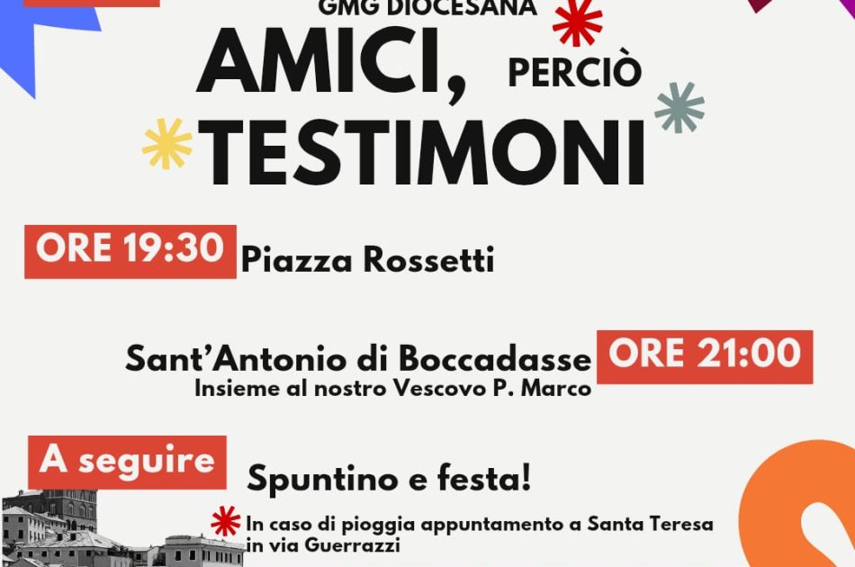 Domenica 23 novembre, Festa di Cristo Re, sarà come oramai tradizione dal 2021 la Giornata mondiale della Gioventù. La Pastorale Giovanile la celebrerà nella serata di sabato 22 novembre. Cristo Re ci ricorda che Gesù deve essere sempre al centro dell’annuncio della Fede. Quest’anno la GMG diocesana avrà una grande novità: sarà fatta a Boccadasse. … Leggi tutto Sabato 22 novembre 2025 a Boccadasse la GMG diocesana
