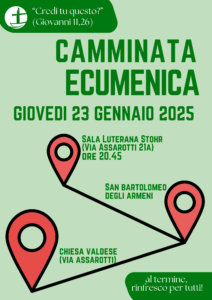 Giovedì 23 gennaio 2025 si svolgerà la Camminata ecumenica organizzata dall’Ufficio diocesano per l’Ecumenismo e il dialogo interreligioso, insieme con Pastorale giovanile e Giovani di AC, con questo programma: