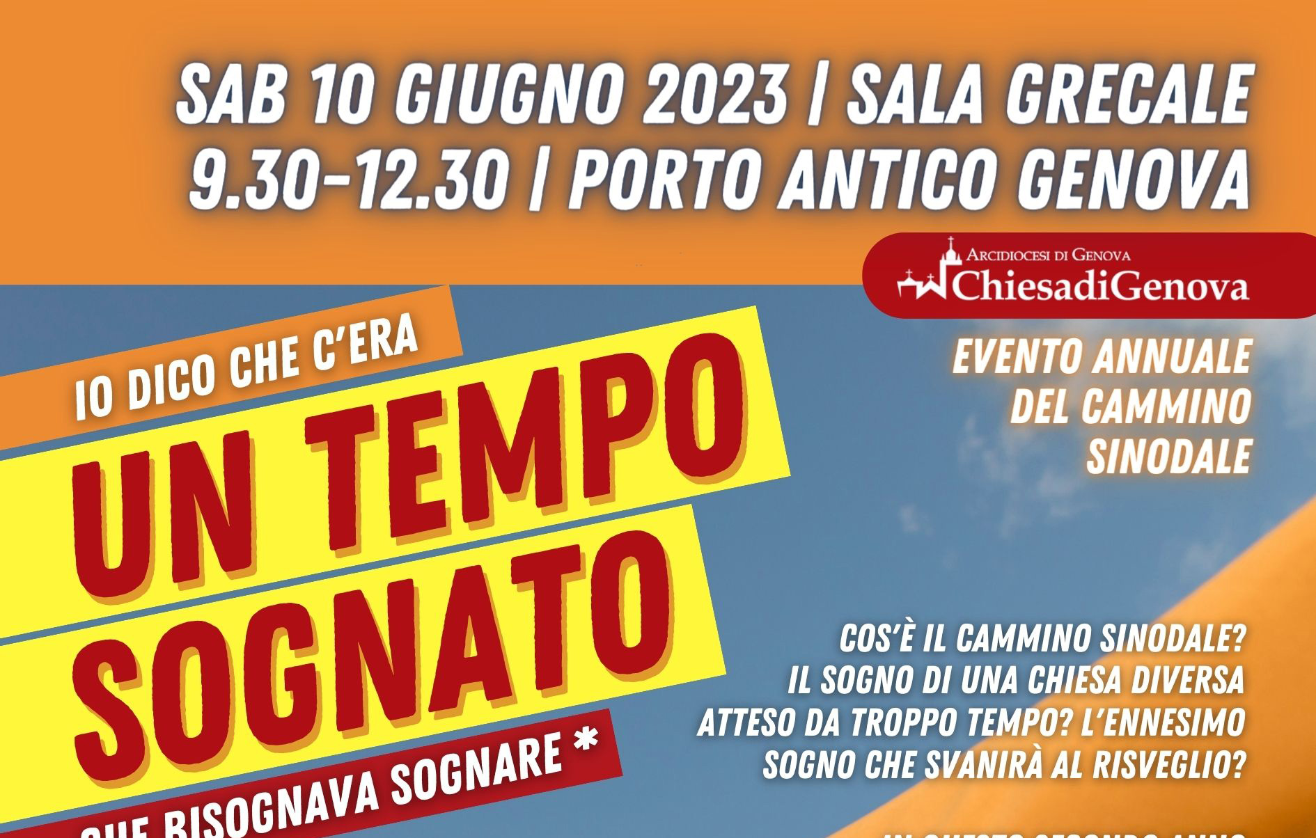Ivano Fossati ci ha gentilmente concesso di prendere in prestito questo suo verso per l’evento del secondo anno di Cammino sinodale, sabato 10 giugno, dalle 9.30 alle 12.30, alla Sala Grecale del Porto Antico.